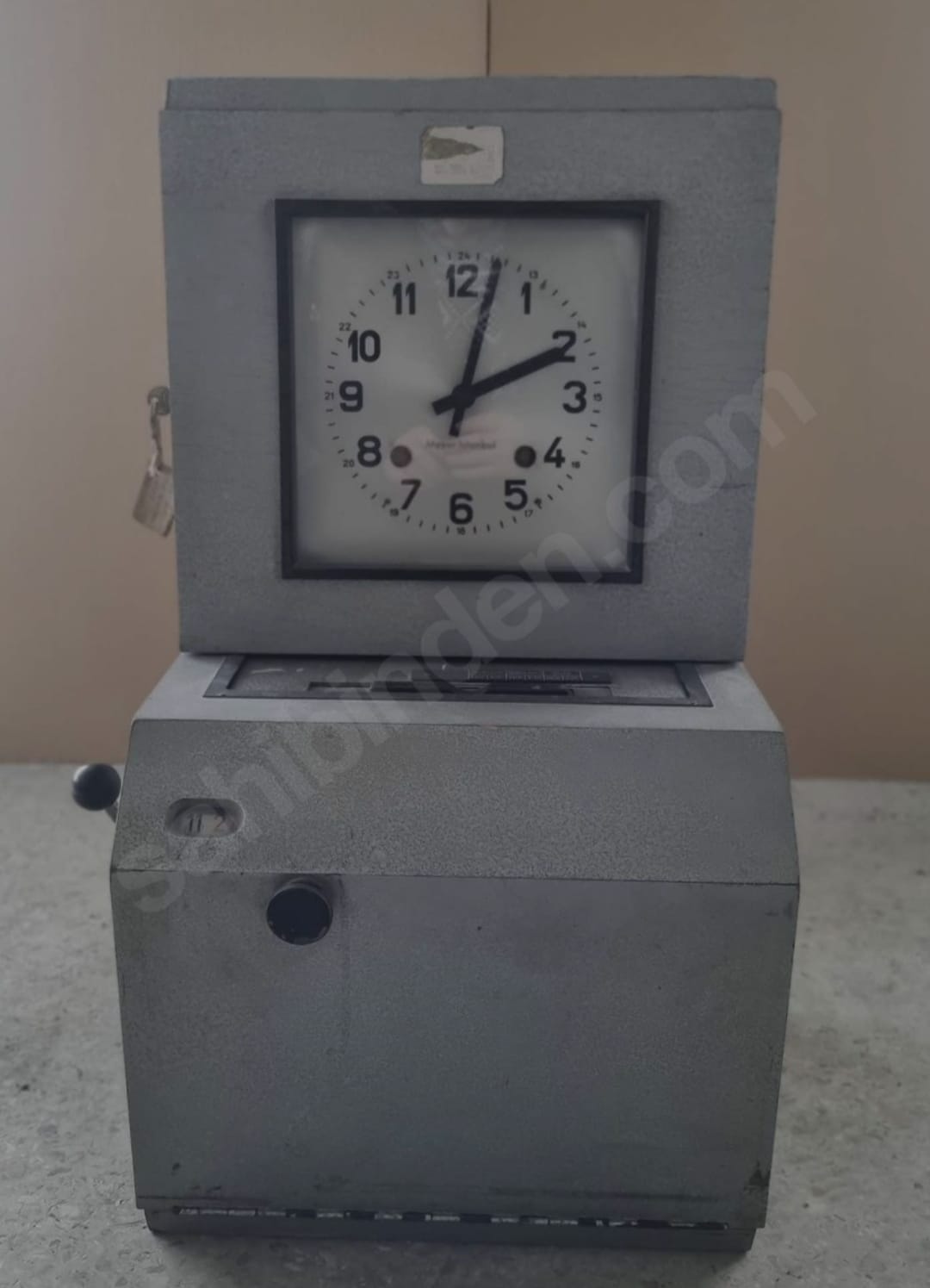 150 kişilik İşe geliş gidiş raporu yapmak için kullanılan mekanik çalışan Antika değerli kurmalı saat çalışıyor