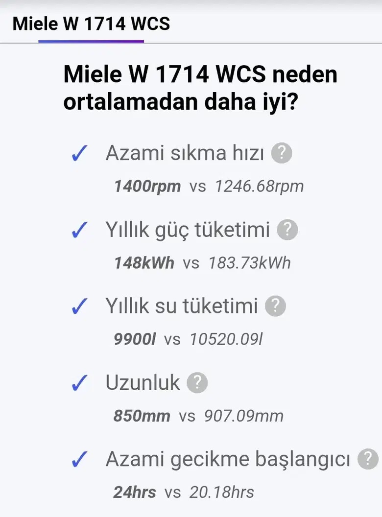 Miele W 1714 çamaşır makinesi, enerji tüketimini en aza indirmek için özel olarak tasarlanmıştır. Her bir yıkama döngüsünde 1,02 kWh enerji tüketimine sahiptir. Çalıştırılabilmesi için minimum 2100 W güce sahiptir ve LED ekranı bulunmaktadır. Ayakta kullanılan bu ürün, her bir yıkama döngüsünde 47 litre su tüketmektedir ve maksimum döngü süresi 109 dakikadır. A sınıfında yıkama yapabilen Miele W 1714, B sınıfında sıkma yapabilmekte ve maksimum sıkma hızı 1400 RPM'dir. Bu çamaşır makinesi, 4 ila 6 kg arasında çamaşır kapasitesine sahiptir. Ürün, çocuk kilidi, köpük kontrol sistemi ve yük dengeleme sistemi özellikleri ile birlikte gelir. Miele W 1714 çamaşır makinesi, enerji tasarrufu sağlaması ile öne çıkar. Dayanıklılık ve güvenilirlik için özel olarak tasarlanmıştır. LED ekranı ve modern tasarımı, herhangi bir evin döşemesine uyum sağlar. Çocuk kilidi özelliği, güvenli bir kullanım sunar ve köpük kontrol sistemi, makinenin fazla köpürmesini önleyerek, çamaşırların daha iyi yıkanmasını sağlar. Yük dengeleme sistemi özelliği, makinenin daha az titreşim yaparak daha sessiz çalışmasına neden olur. Miele W 1714 çamaşır makinesi, 6 kg'a kadar çamaşır kapasitesi ile orta boy aileler için idealdir.